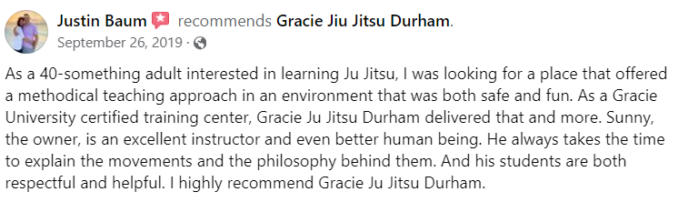 Additionally, you can always give us a call. We would love to chat with you about what we do, and to help you determine if our Gracie Jiu-Jitsu Durham martial arts classes would be a great fit for you and your family!